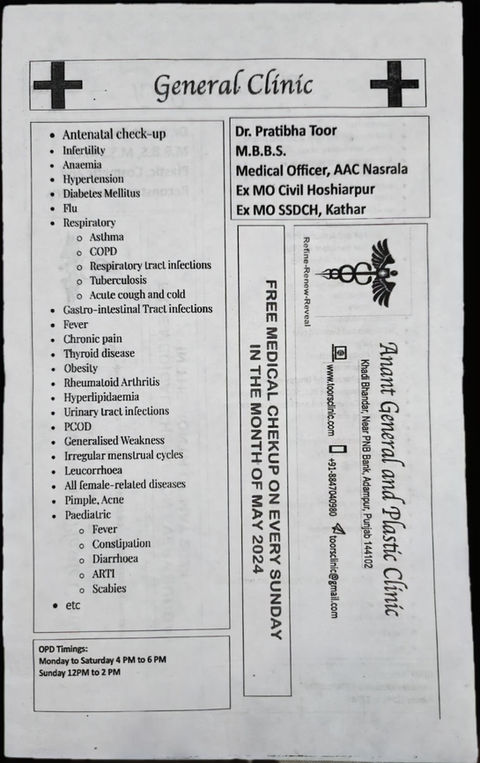 Dr. Pratibha Toor - from 4 PM to 6 PM